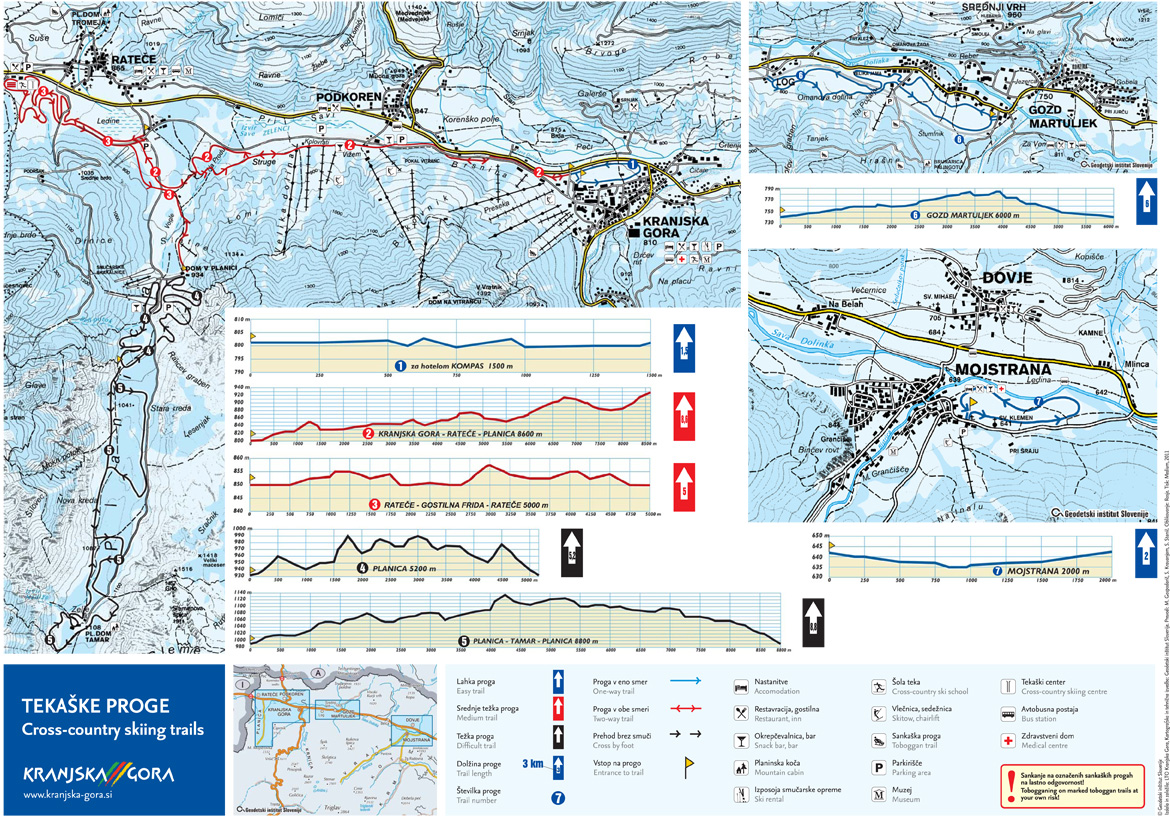 There are some more tracks running from Rateče past Podkoren to Kranjska Gora. The terrain is mostly flat, along the ski slopes and includes a few breaks when the track crosses roads or ski pistes (track 2).