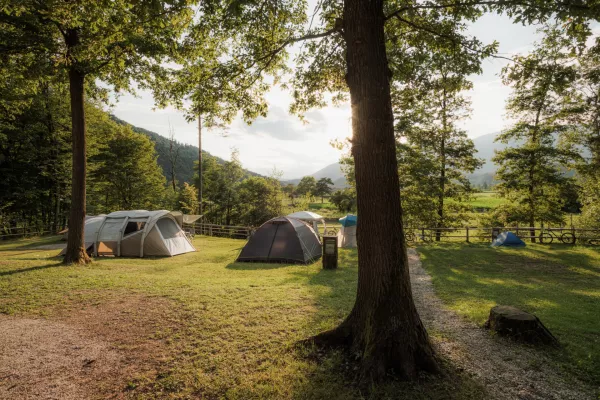 Forest Camping Mozirje is located near the village of Loke pri Mozirju, right next to the crystal-clear alpine Savinja River. It’s an excellent base for active holidays and for exploring the Kamnik–Savinja Alps. You’re fully immersed in nature, yet still conveniently close to everything you might need.