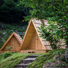 Od parkirišča se po potki spustimo do reke, kjer prečkamo most, ki je starejše lesene izvedbe, zato skakanje po njem in zibanje ni dovoljeno. Nadaljujemo mimo stanovanjskih hiš do zgornjega travnika z balvani. 5 minut hoje.